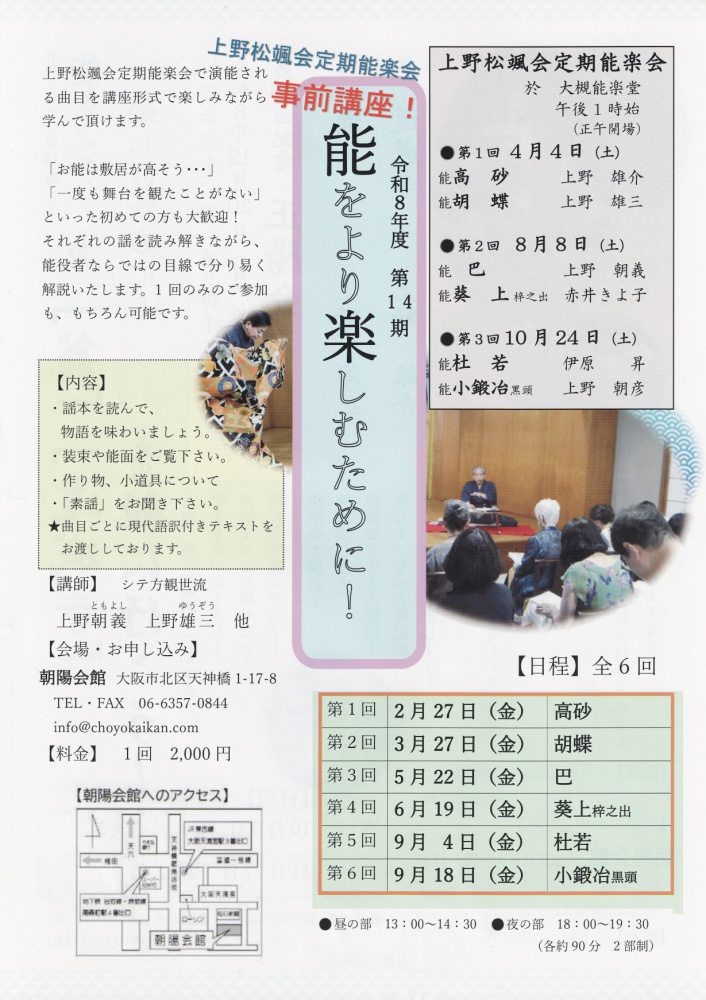 ●第87期 令和8年度 第2回 上野松颯会定期能楽会